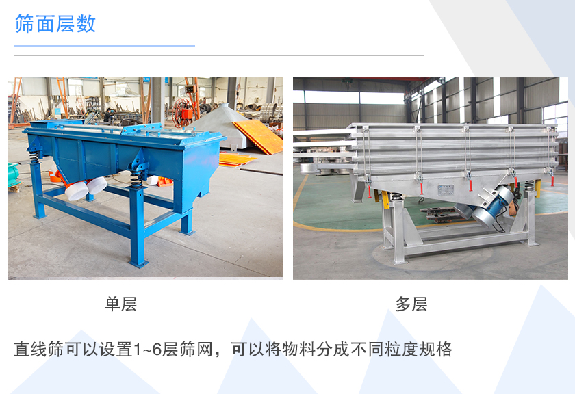 直線篩可以設(shè)置1~6層篩網(wǎng),可以將物料分成不同粒度規(guī)格,隨著層數(shù)的增加,其耗材和做工成本就越高,所以價(jià)格也會(huì)相應(yīng)增高。