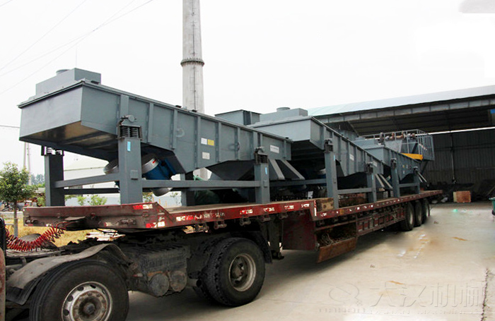 DZSF系列直線振動篩為雙振動電機驅動。當兩臺振動電機做同步、反向旋轉時,其偏心塊所產(chǎn)生的激振力在平行于電機軸線的方向相互抵消,在垂直于電機軸的方向疊為一合力,因此篩機的運動軌跡為一直線。兩電機軸相對篩面在垂直方向有一傾角,在激振力和物料自重力的合力作用下,物料在篩面上被拋起跳躍或向前作直線運動,從而達到對物料進行篩選和分級的目的。